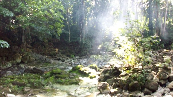 Yesterday they invited us on this jungle hike and we trekked through the rainforest, past wild corn fields and turkeys and ducks and pigs and crickets that make a sound like a child screaming and tried to look for monkeys. We passed Mayan men and boys carrying huge bags of rice tied to their backs and supported by their foreheads, women walking barefoot with tortillas on their heads, and men casually walking around with huge machetes, hacking through the bushes, and finally arrived to this fresh water spring pool.