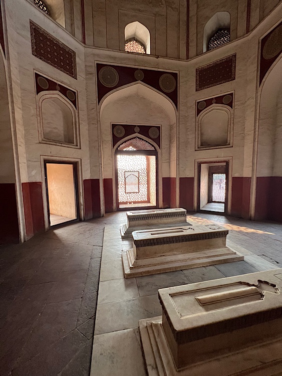 We met for an early morning train ride – through security, boarded a women’s only train if we wanted – before walking through the local neighborhoods to a casual breakfast. Then we strolled through markets and spice smelling and tea stands, soaking in the chaos and black smoky skies of pollution that is Delhi. Where people seem to honk out in an indecipherable Morse code, but they just know they must honk.