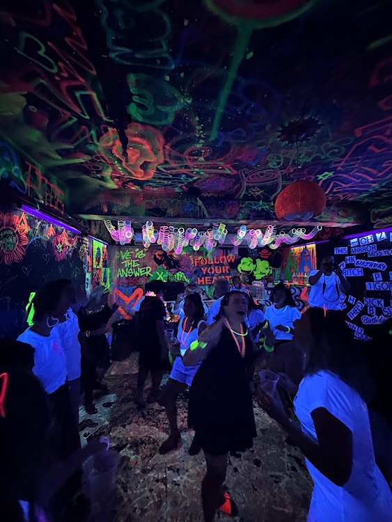 I rented out a black light space where you paint each other and blast pop songs. I provided pizza and snacks from the black market American store and it was BYOB and boy, my friends, b’ed so hard I had leftovers to pick up the next day. We danced, smoked shisha, ate Cheezits and BlowPops, I gave a teary speech, we painted each other and the walls and danced some more.