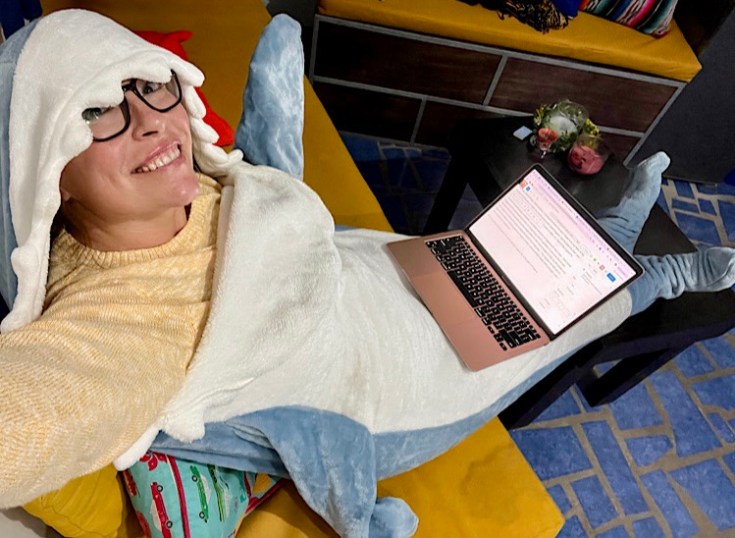 PS I’m typing this dressed in a shark blanket onesie. So. If I’ve got it, I’ll take it.